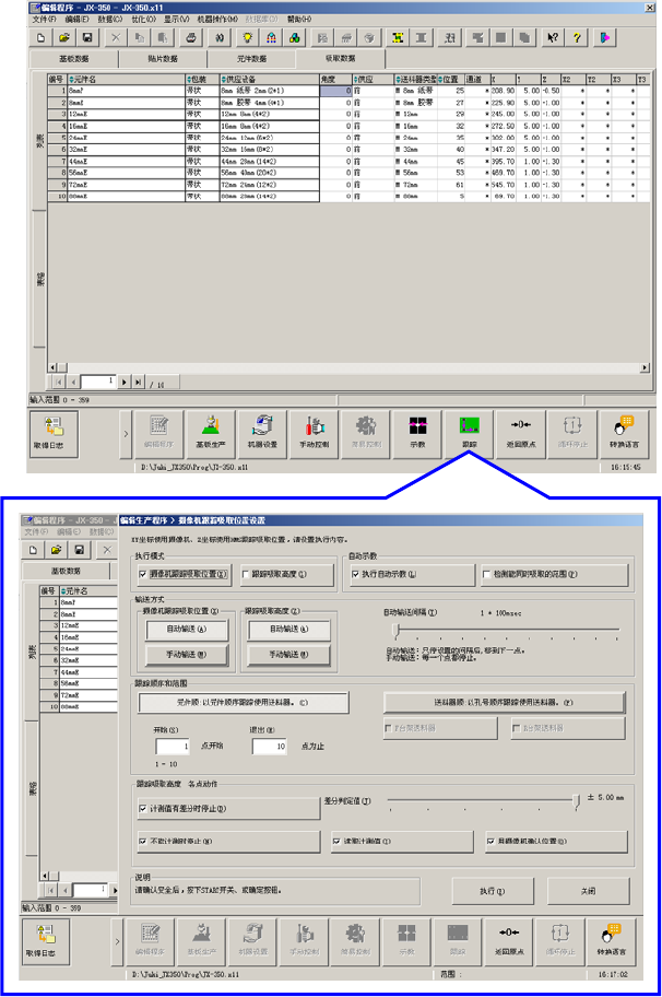 按动程序启动按钮,机器可以快捷地启动和切换编辑、基板生产、机器设置、手动控制、自动校准等