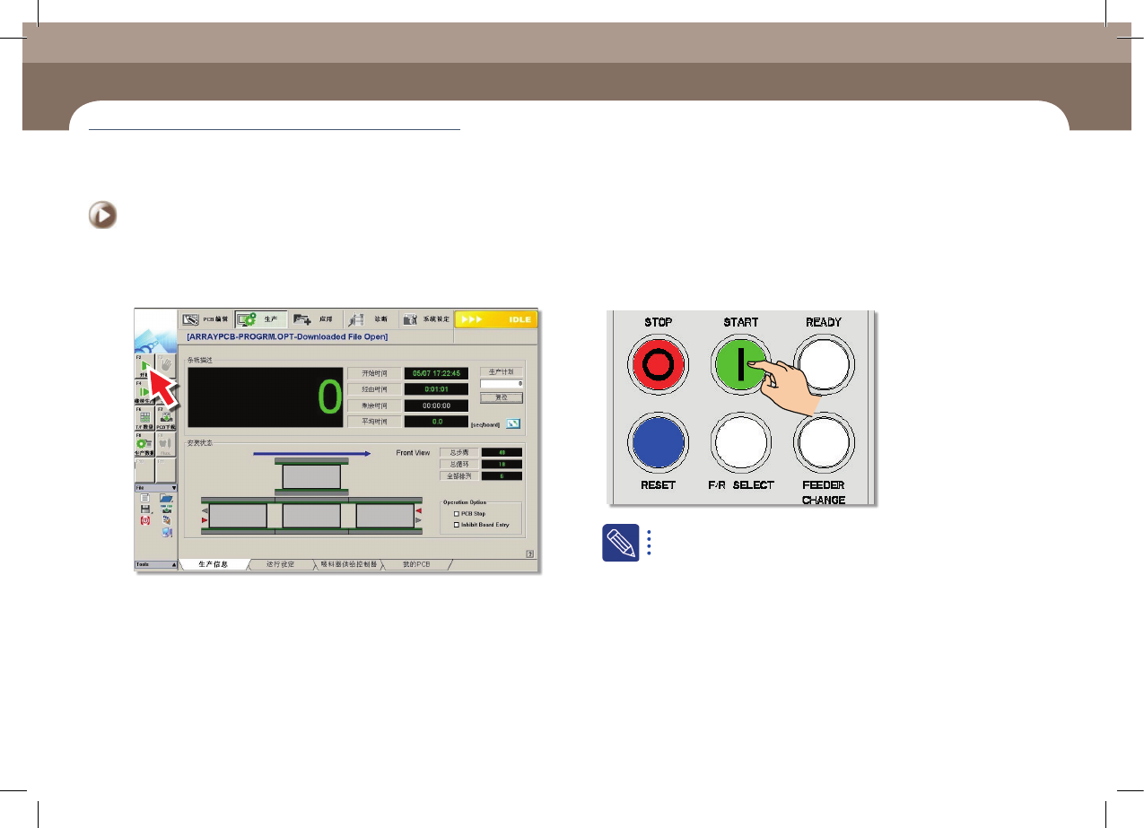 生产过程中的检验事项 Chap ter 4 Advanced Mult i- Func ti onal Place r DE CAN L 2 O pe ra tio n H an db oo k 4-1 1 本 Chapter 主要介绍检验生产中错误或其他事项并采取措施时的设备暂停方法(继续/开始 模式) , 异常停止方法( 人为/系统异常停止) , 异常停止后系统重启方法等 暂 停 > 开 始模式 : 错误发生后恢 复生产的 方…