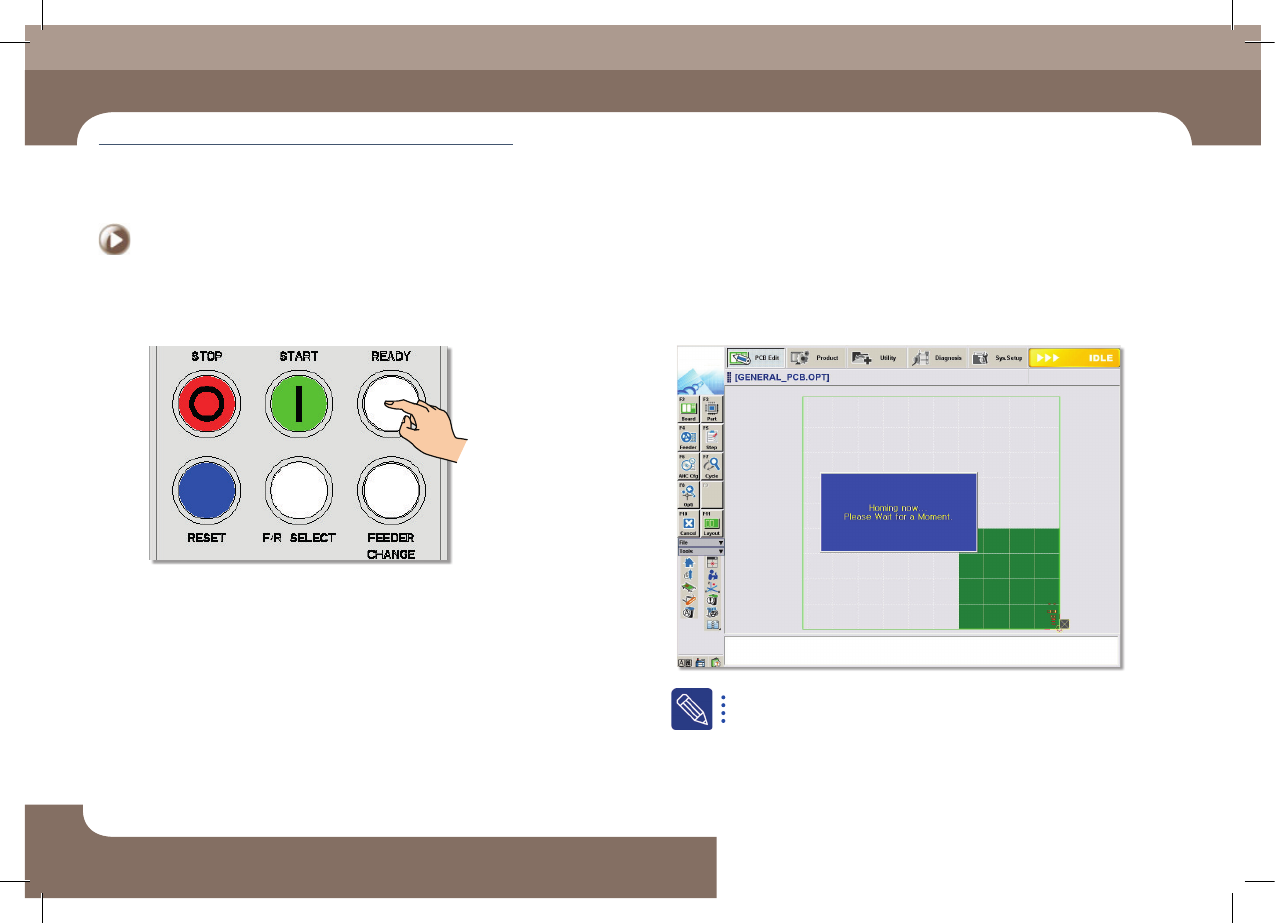 生产过程中的检验事项 Chap ter 4 Advanced Mult i- Func ti onal Place r DE CAN L 2 O pe ra tio n H an db oo k 4-1 6 本 Chapter 主要介绍检验生产中错误或其他事项并采取措施时的设备暂停方法(继续/开始 模式) , 异常停止方法( 人为/系统异常停止) , 异常停止后系统重启方法等 紧急 停 止 > 系统 异常 停 止: 系统 自 我判…