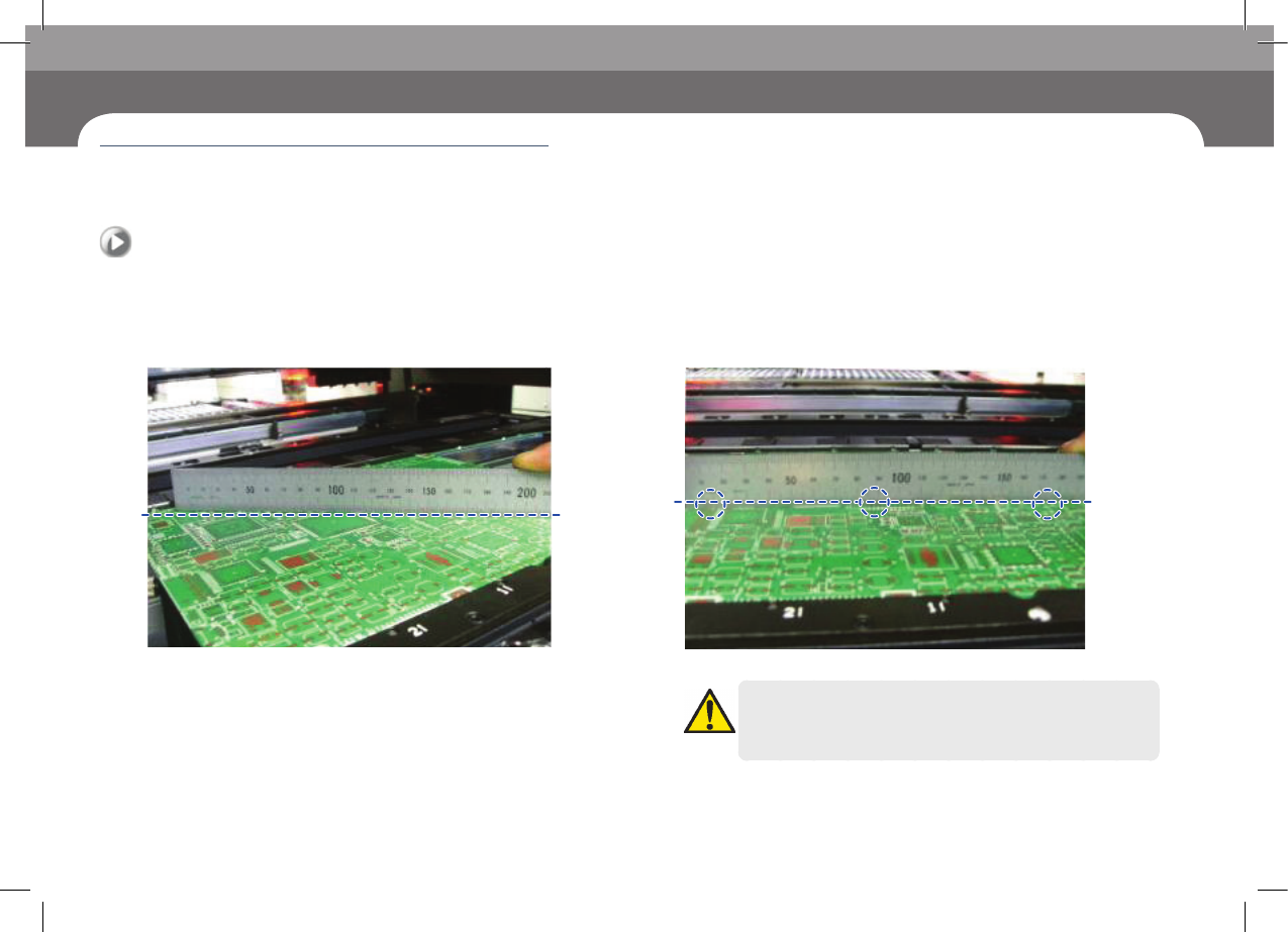 在Conveyor上装上 PCB并进行固定后,利用卷尺测定 PCB的平坦度。