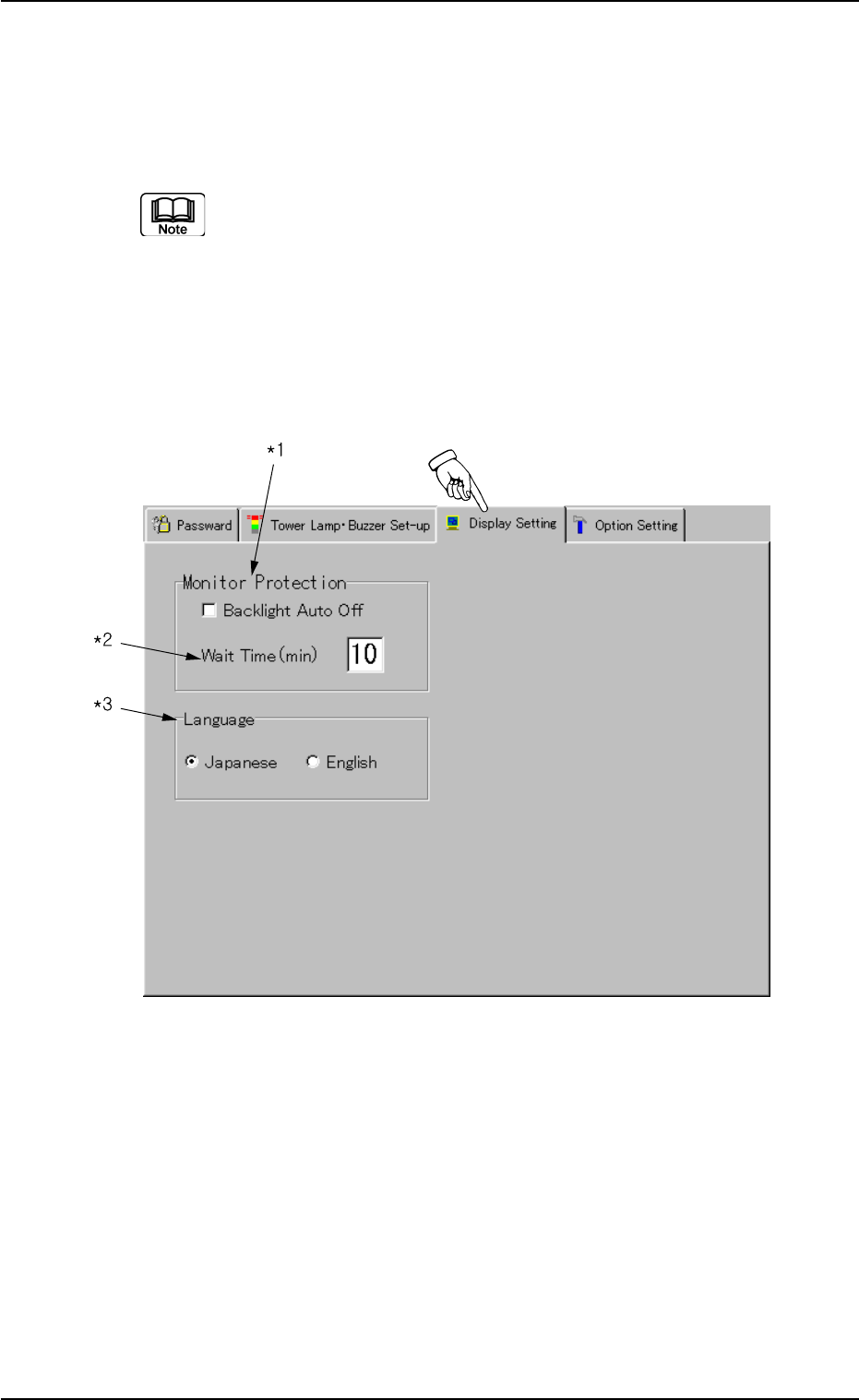 2.3 2.3 2.3 2.3 2.3 “ Display Setting Display Setting Display Setting Display Setting Display Setting ” Tab Tab Tab Tab Tab 为防止触摸屏死机,可设定长时间不操作触摸屏时的界面显示自动 停止的屏保功能。 (a) 碰触触摸屏或按下前操作台的 [POWER OFF] 按钮,就 能解除屏保,显示界面。 (b) 装置发生异常…