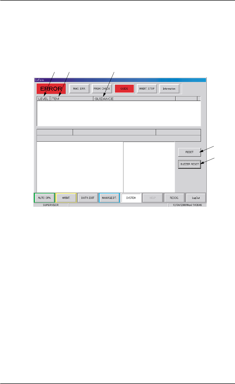 1.4 1.4 1.4 1.4 1.4 保养·维修停机界面 保养·维修停机界面 保养·维修停机界面 保养·维修停机界面 保养·维修停机界面 • 界面显示 界面显示 界面显示 界面显示 界面显示 按下 “ ERROR( 异常显示 ) ” 界面的 [MAINT. STOP] 按钮,显示如下 界面。 Fig.4A5 Fig.4A5 Fig.4A5 Fig.4A5 Fig.4A5 • 界面构成 界面构成 界面构成 界面构成 界面构成 *1 DA…