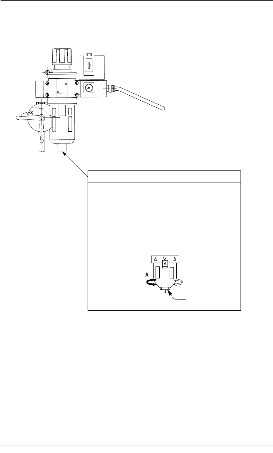 Fig.5A 11 Fig.5A 11 Fig.5A 11 Fig.5A 11 Fig.5A 11 气源 气源 气源 气源 气源 0008-003 3 章1 - 1 2 AFU0 1 EINP 5. 5. 5. 5. 5. 每周保养·维修 每周保养·维修 每周保养·维修 每周保养·维修 每周保养·维修 排水管 清扫 排水管排水按如下顺序进行。 ( 1 ) 在排水管下放置容器等。 (2) 将各空气滤网的外箱下盖顺着箭头 A 方向 慢慢转动…