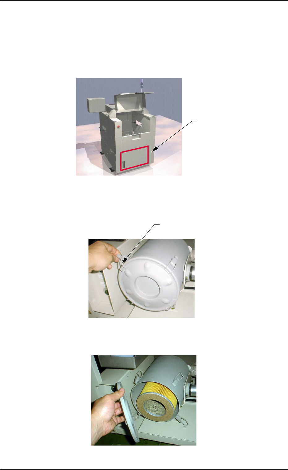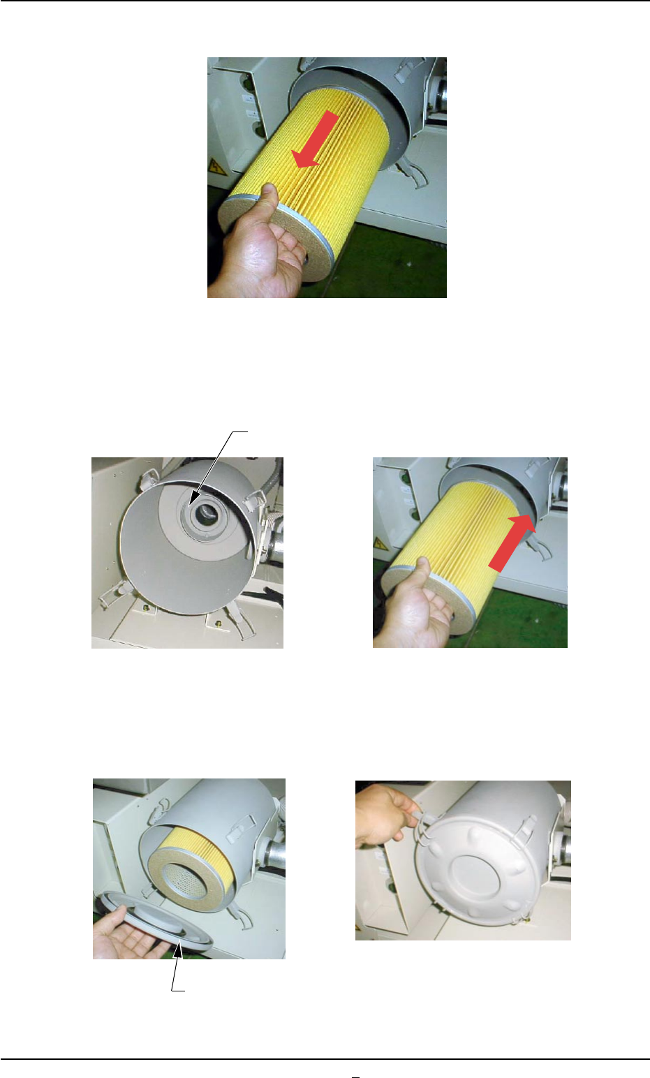 (4) 拆下滤网,用气枪、电子吸尘器清除滤网上的灰尘。 Fig.5A37-4 Fig.5A37-4 Fig.5A37-4 Fig.5A37-4 Fig.5A37-4 (5) 安置滤网,要使滤网的中心孔对准滤网盖中的 Flange 。 Fig.5A37-5 Fig.5A37-5 Fig.5A37-5 Fig.5A37-5 Fig.5A37-5 (6) 将滤网帽的中心 Flange 对准滤网的中心孔,按紧滤网帽后, 固定夹钳。 Fig.5A…