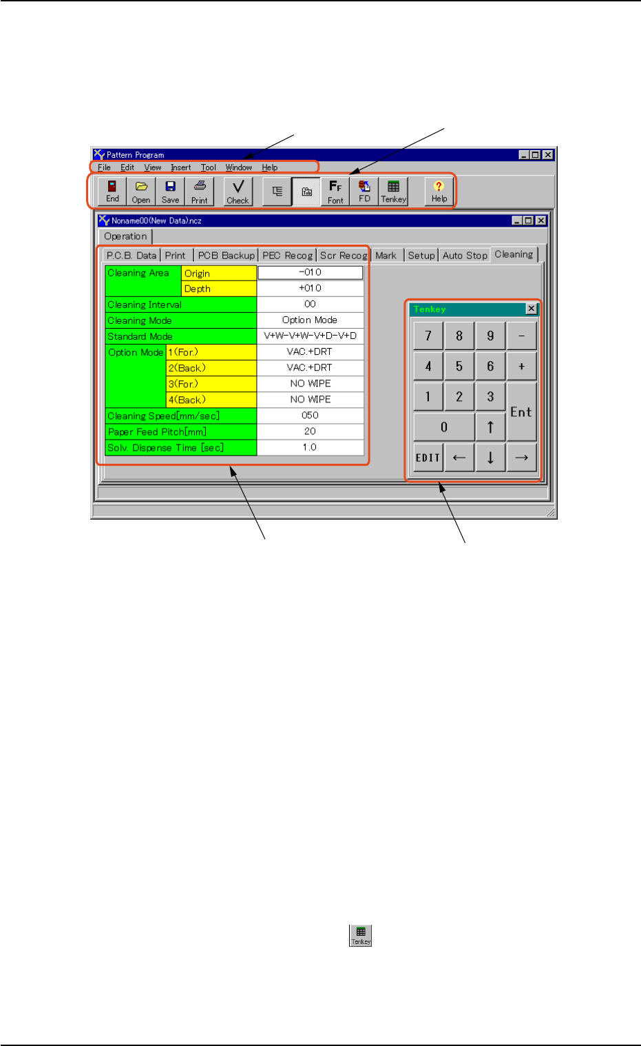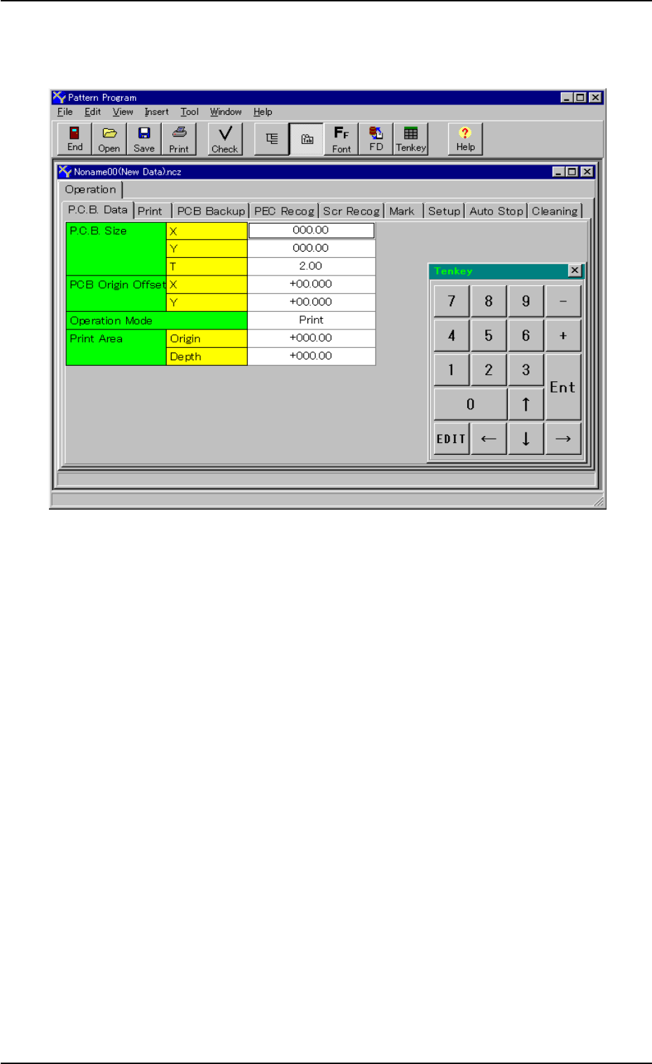 (4) 在 “ Open ” 界面机种名一览中选择要编辑的 Pattern Program , 或者在 “ Alphabet Keyboard ” 界面输入机种名后按 [OK] 按钮 , 就会如下显示该 Pattern Program 的编辑界面。 Fig.3B76 Fig.3B76 Fig.3B76 Fig.3B76 Fig.3B76 “ Pattern Program Pattern Program Pattern Program …