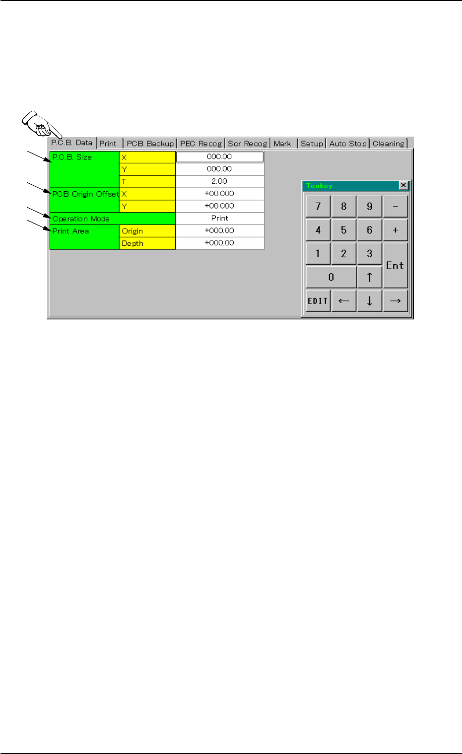 按下编辑页面的[P.C.B.Data(基板数据)]Tab键,如下显示Tab页