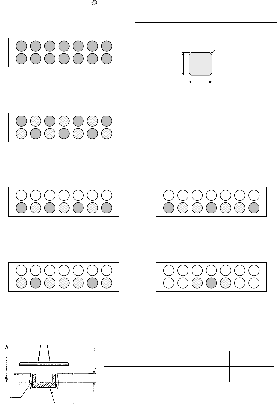 ■ 能够吸着的元件尺寸和吸嘴配置(●, : 能够吸着,○: 不能吸着)