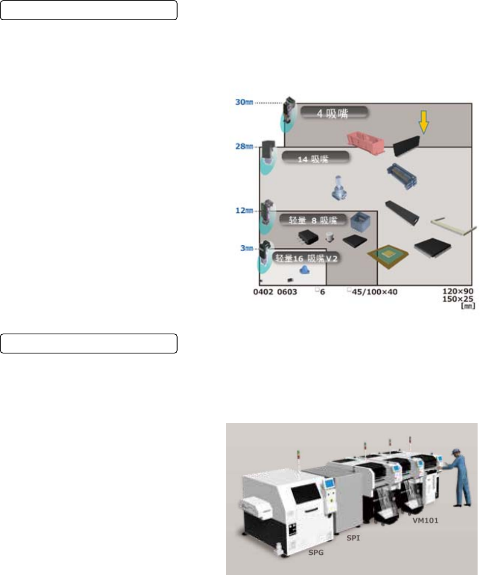 1) 如果是少品种多量生产的话,通过对能够进行高速芯片实装的 VM101 轻量 16 吸嘴贴装头 V2 和、