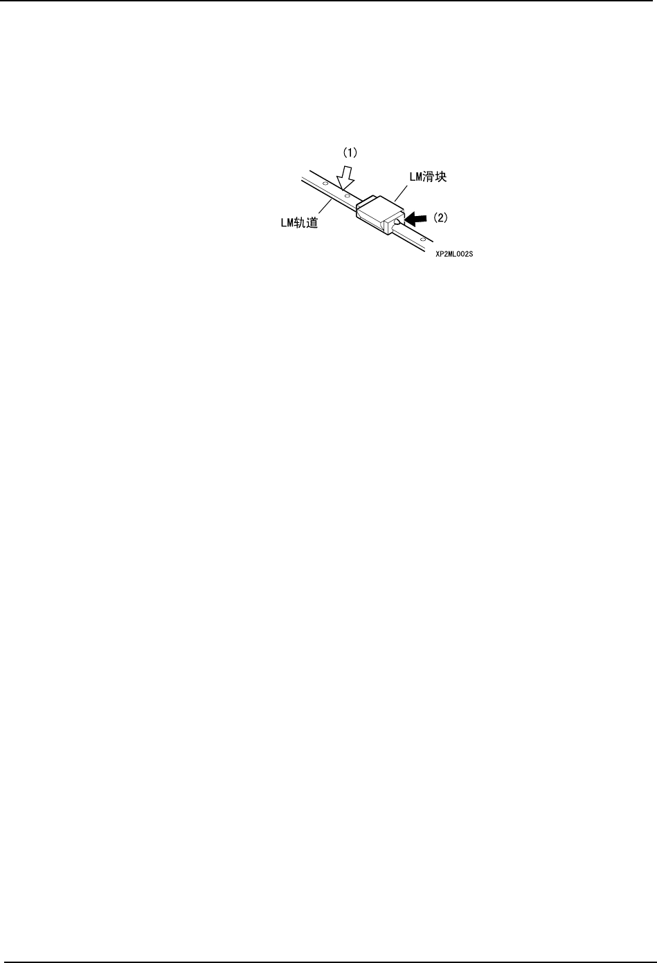 备注 ) 不带喷油嘴的 LM 滑块,通过滑块和 LM 轨道之间 ( 轴承槽部 ) 涂抹润滑油,付着在轴承滚珠