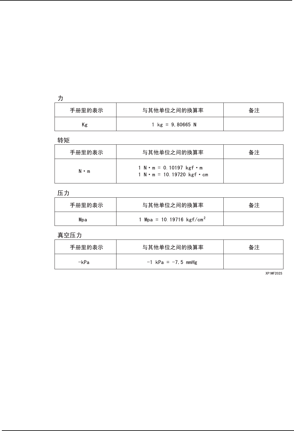 本手册里使用的表示单位和其他单位之间的换算率如下所示。