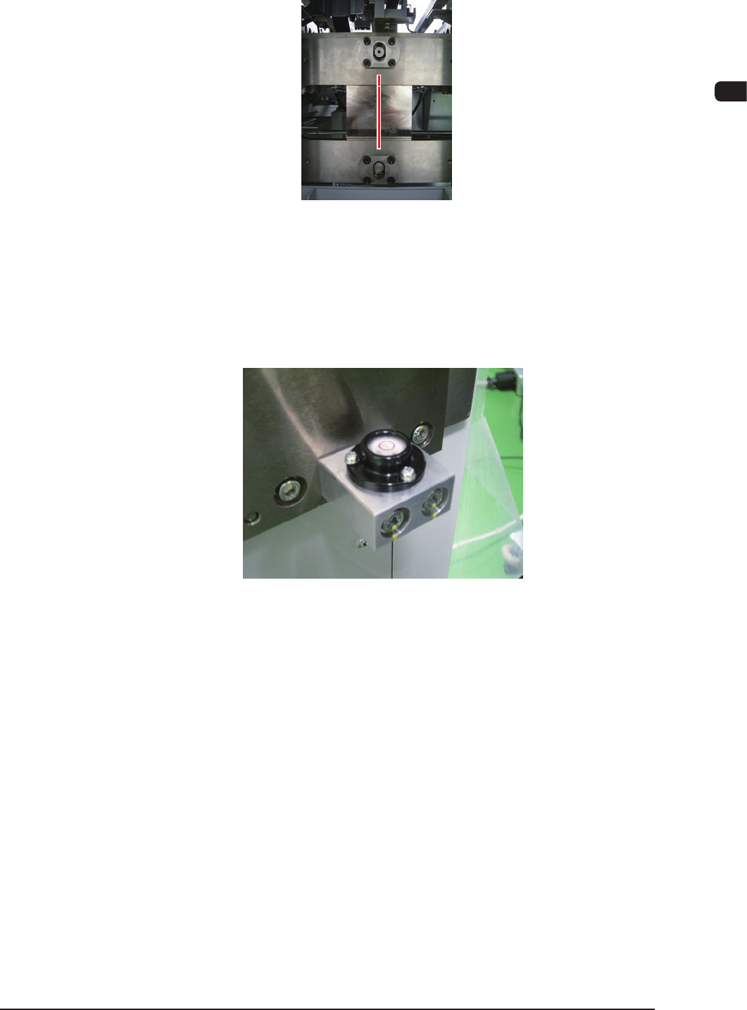 エレベータユニット背面側に付いている水準器 2 か所の気泡が中