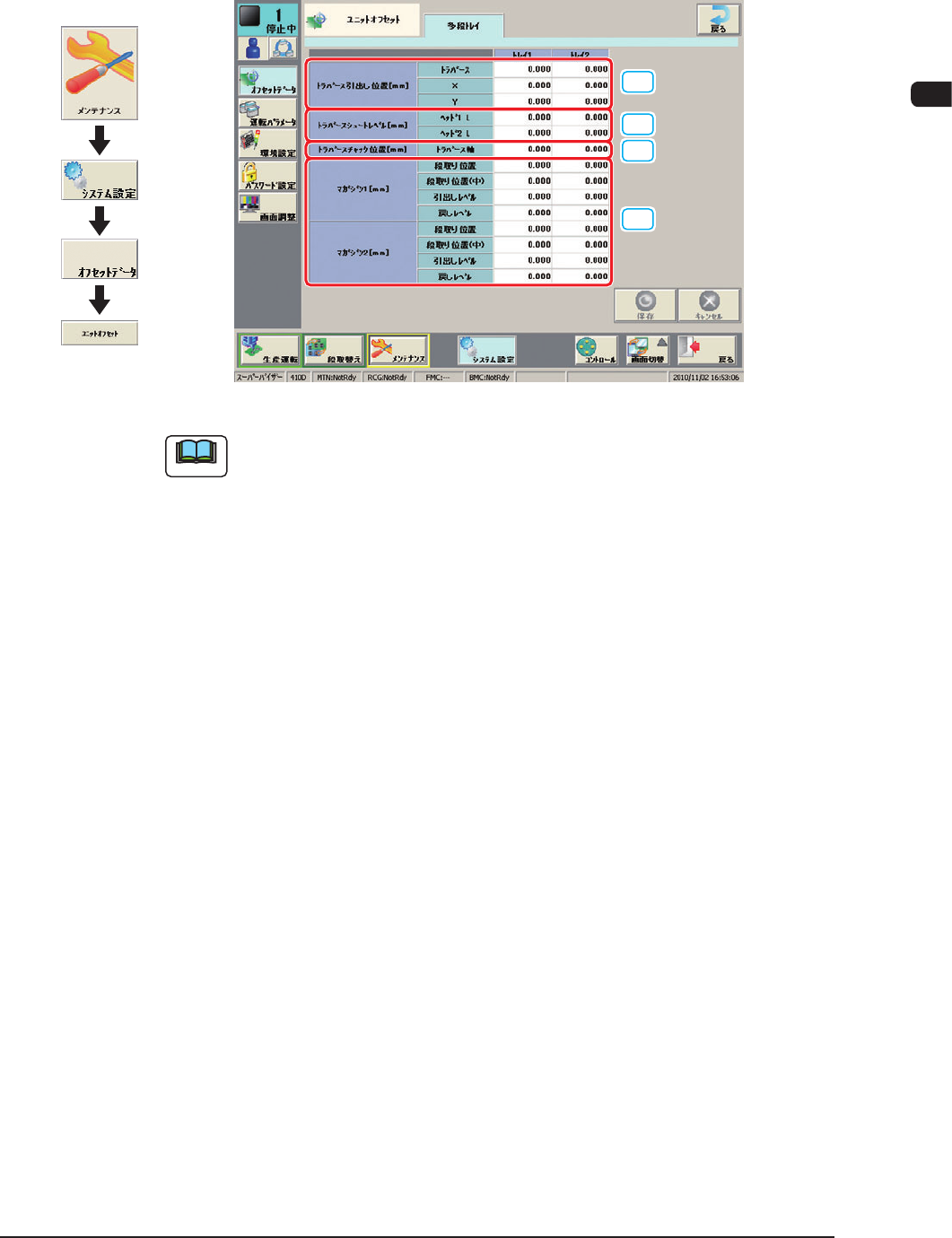 “オフセットデータ”画面に戻ります。