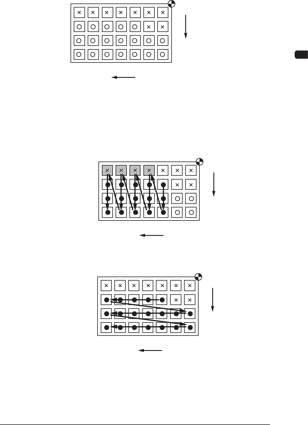 7OM-1601 3 章 2. システム設定メニュー 3-23 例 : トレイの状態が F7C17 のような場合(仕掛かりトレイ) 3 1 2 99 ・ ・ ・ 2 1 99 ・ ・ ・ ・ ・ ・ X Y ×:部品なし (取り出し済み) ○:部品あり F7C22 • 最初に部品を吸着する位置は、 (X:3、Y:2)とします。 ● : 正常に吸着されます。 ○ : 部品が残ります。 斜線 : 吸着ミスとなります。 “ Y方向 ” を選択…