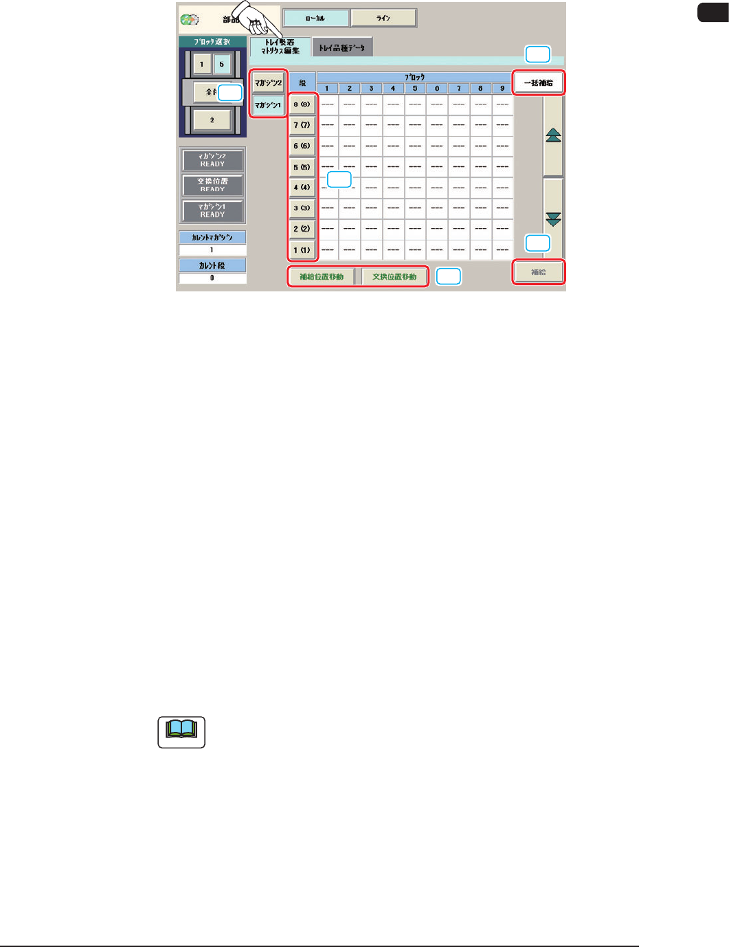 [ 補給位置移動 ] : 現在選択しているマガジンを部品補給位置へ移動