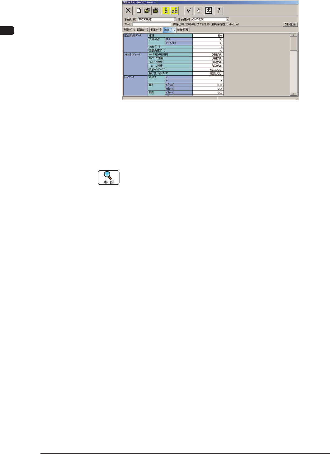 部品供給データの種類に“トレイ”を設定し、他の部品供給データおよび