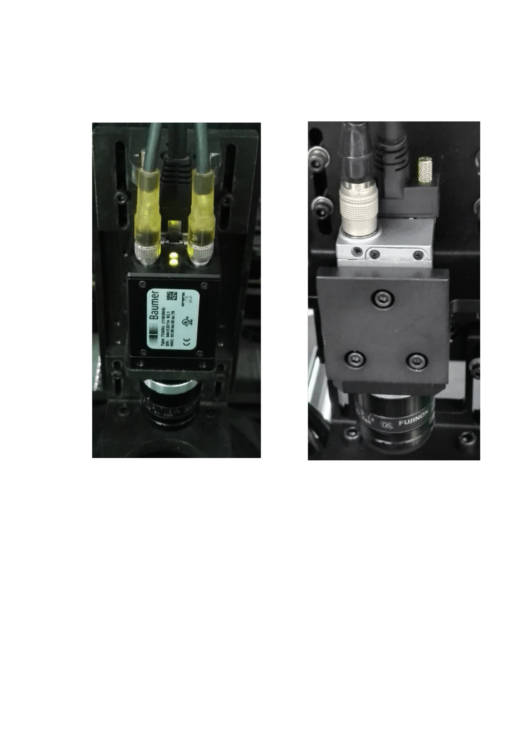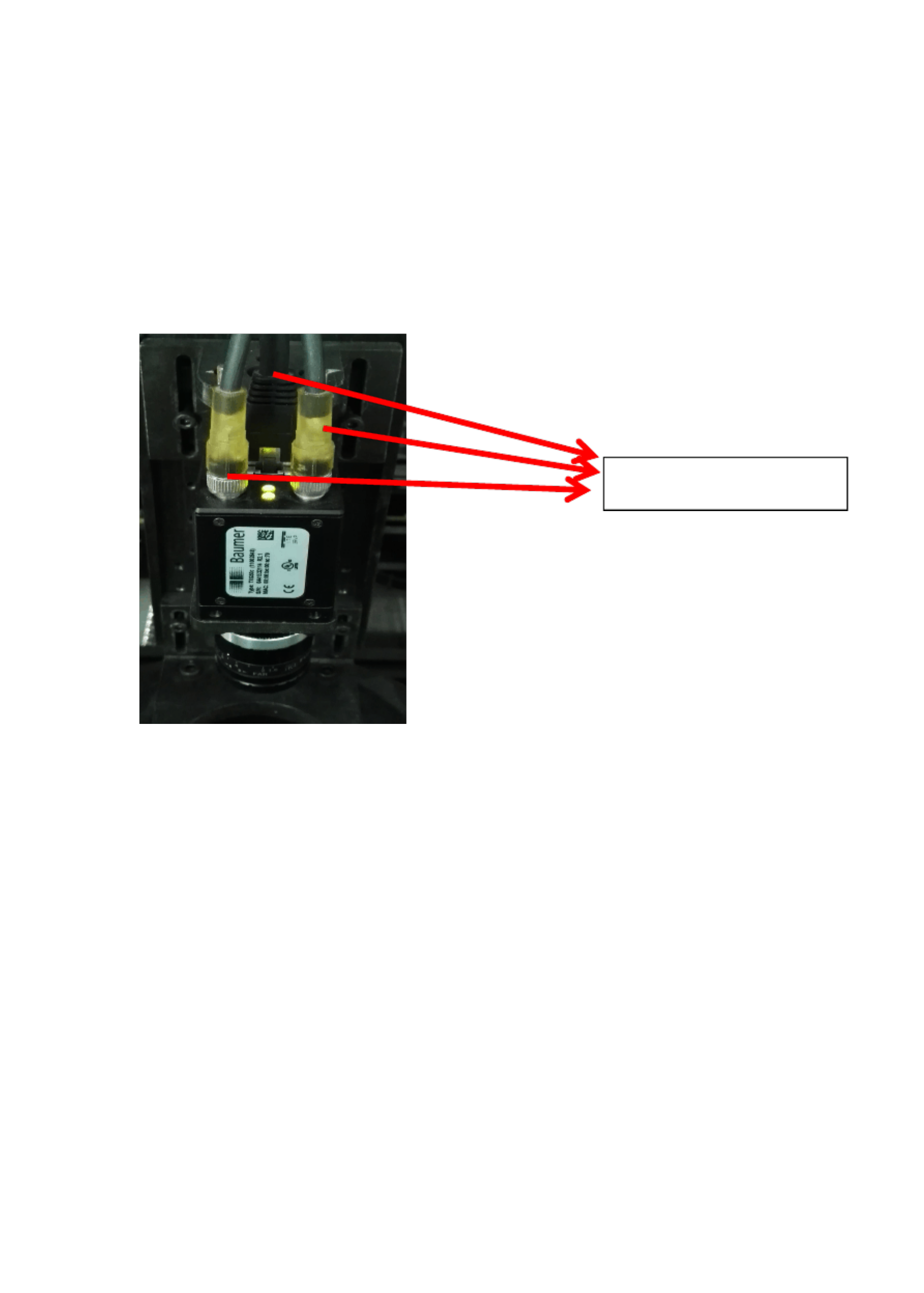 Baumer 相机上面有一个网线口,两个信号线口,两个小灯,正常是一个灯常亮,一个灯闪