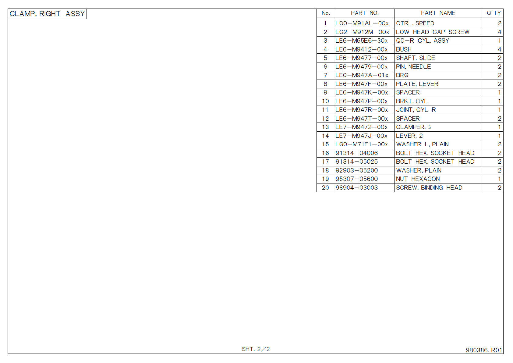 S H T . 2 / 2 P A R T N O . P A R T N A M E Q ’ T Y N o . 1 L C 0 - M 9 1 A L - 0 0 x C T R L . S P E E D 2 2 L C 2 - M 9 1 2 M - 0 0 x L O W H E A D C A P S C R E W 4 3 L E 6 - M 6 5 E 6 - 3 0 x Q C - R C Y L . A S S Y …