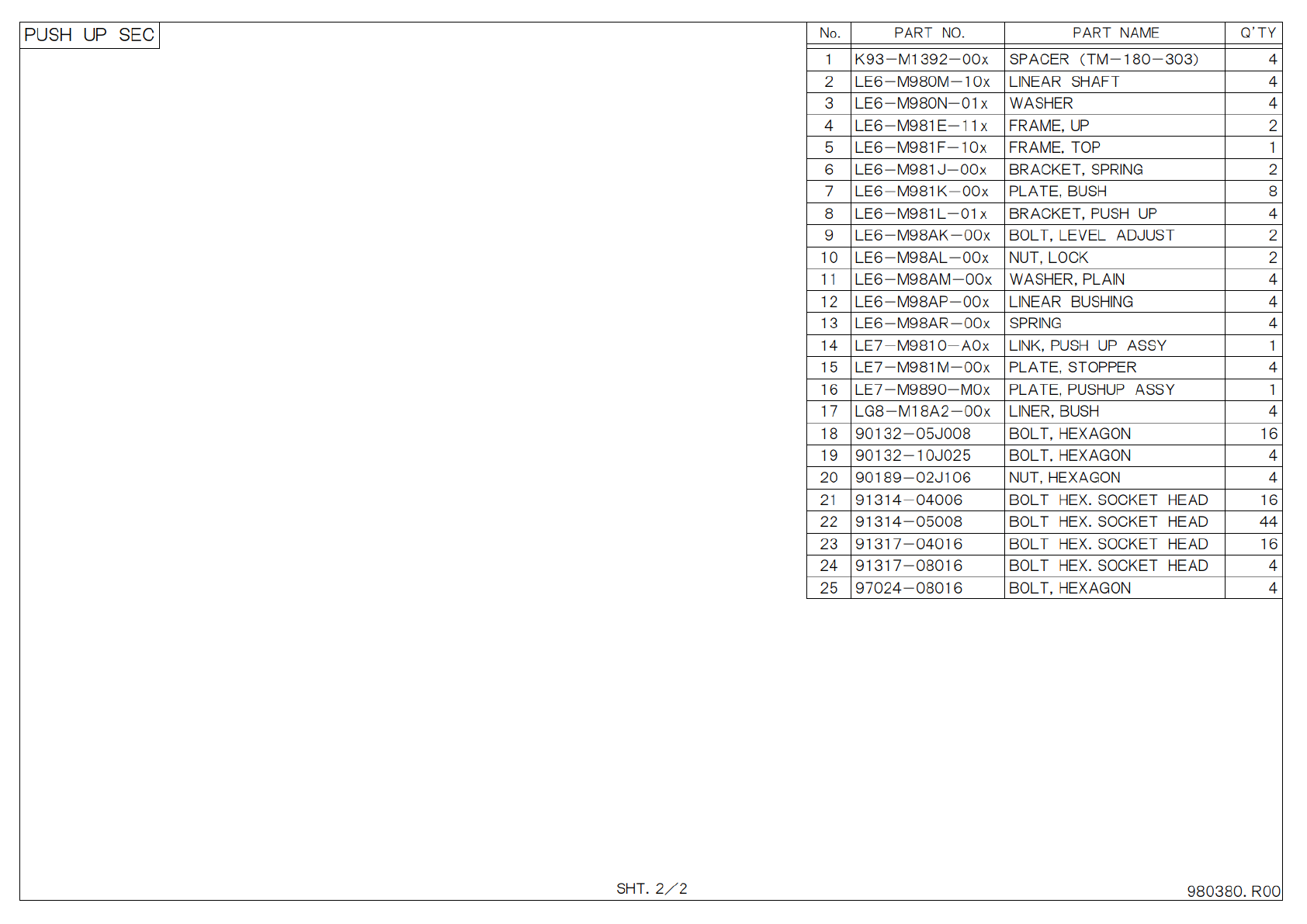 S H T . 2 / 2 P A R T N O . P A R T N A M E Q ’ T Y N o . 1 K 9 3 - M 1 3 9 2 - 0 0 x S P A C E R ( T M - 1 8 0 - 3 0 3 ) 4 2 L E 6 - M 9 8 0 M - 1 0 x L I N E A R S H A F T 4 3 L E 6 - M 9 8 0 N - 0 1 x W A S H E R 4 4 …