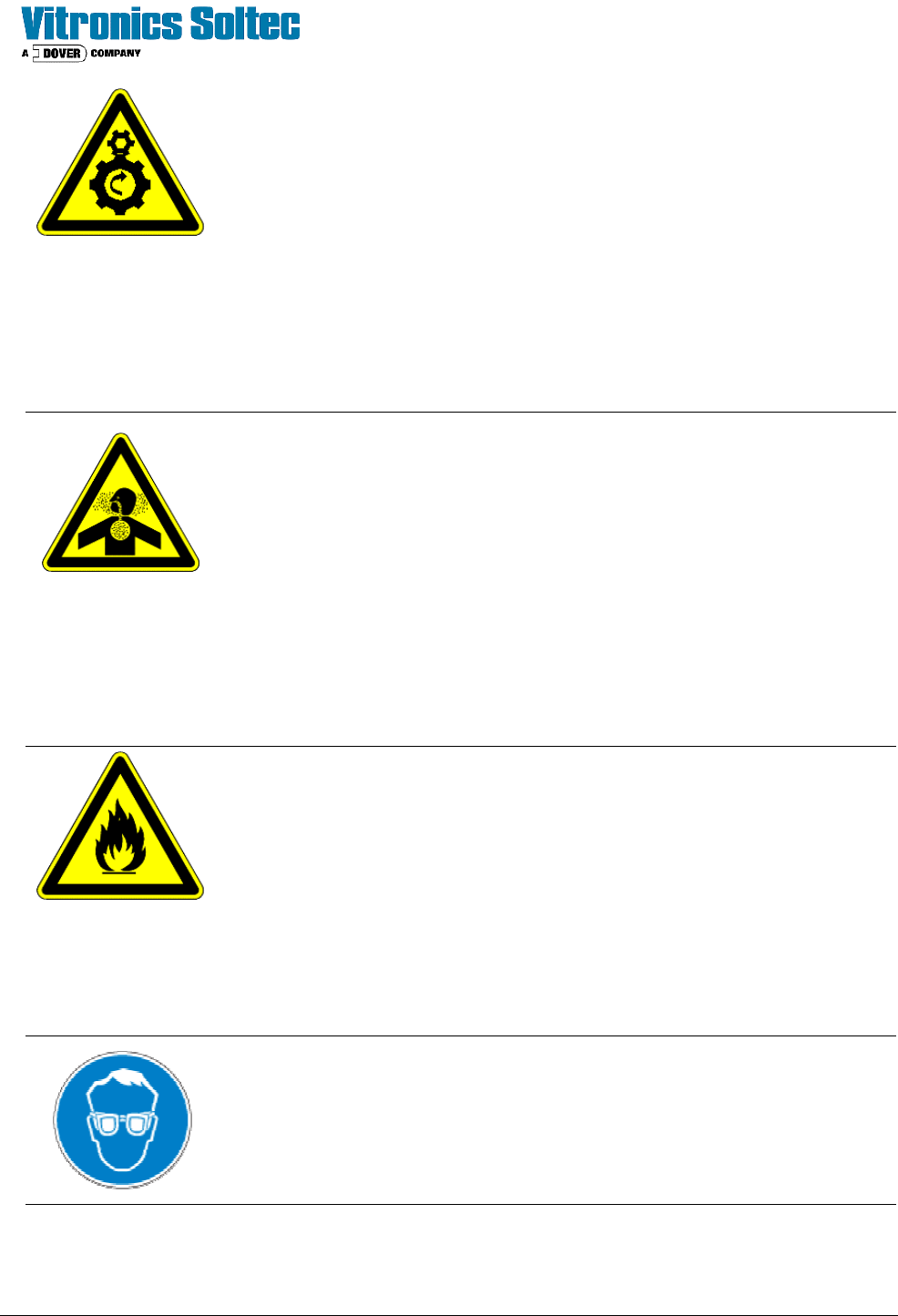 Site Preparation & Installation Section: 1 Page: 5 Revision Date: April 2005 MECHANICAL HA ZARDS: All moving parts including moto rs, pulleys, belts, chains, sprockets, cooling fans, an d cylind ers present a potenti…