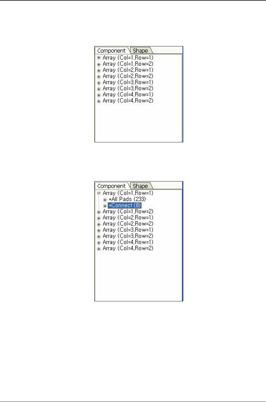 基板由Array(多连板)构成时,在元件别、形状别列表前增加“Array” .