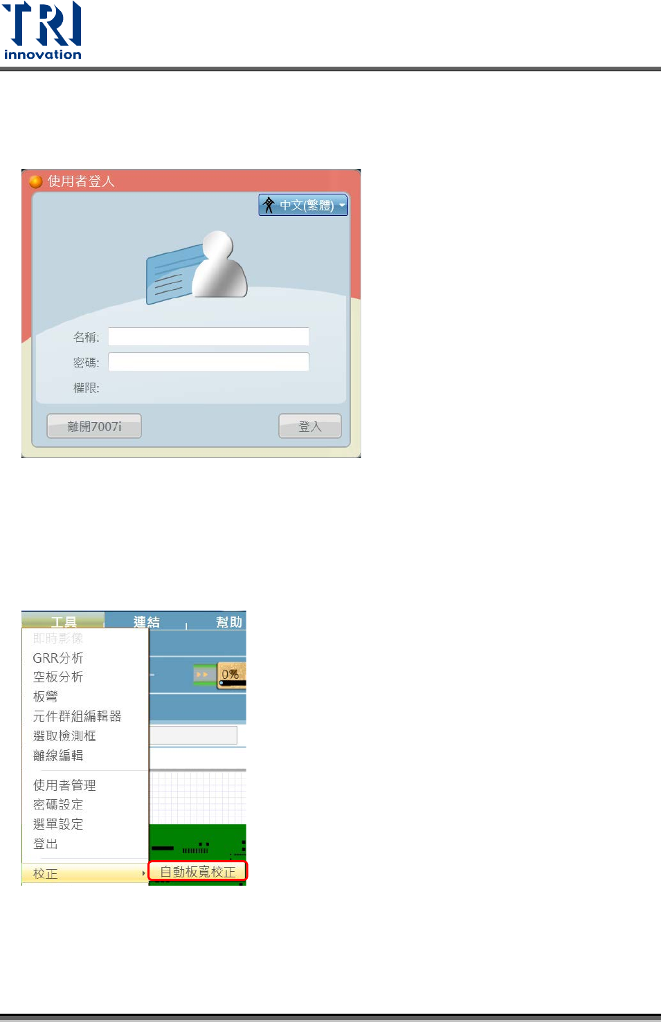 校正選單中的[自動板寬校正]為選配功能。此功能使用時請由 TRI 工程師操作使用。