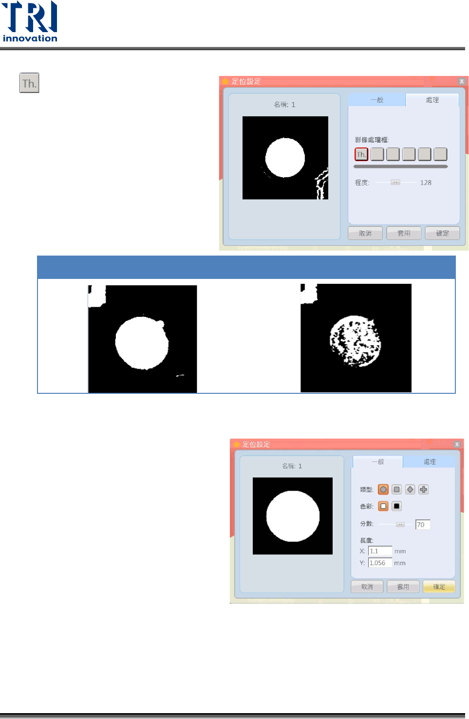 門檻值:設定影像亮暗門檻值。