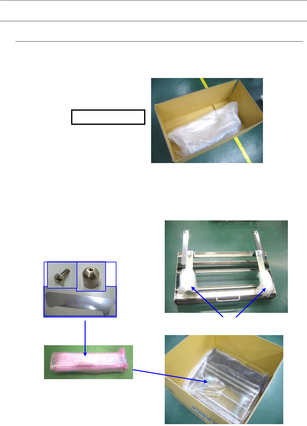 OUTER_PACKING_CASE)。请用气泡包装膜填埋空隙。安装螺丝请放入乙烯树脂袋,一起打包。