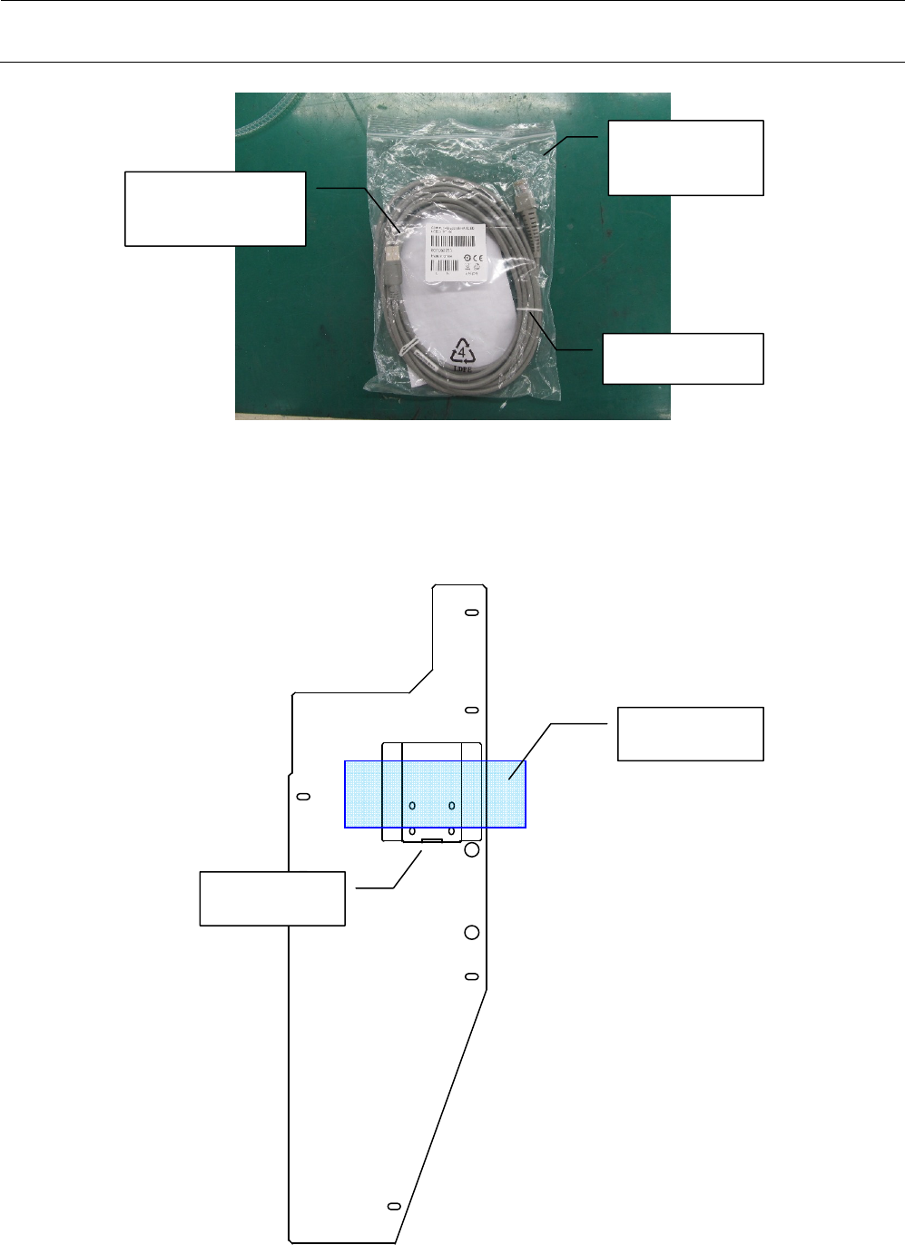 在贴片机本体后侧的 RBL 盖罩部设置 USB 支架时,按照下图所示用纤维胶带固定支架。