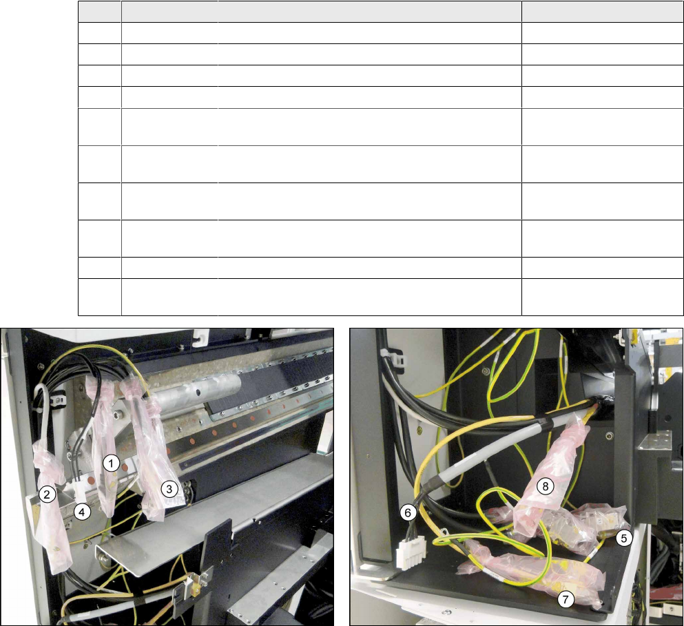 ► Place the cable tree with the following cables into the machine. Begin by running from the top