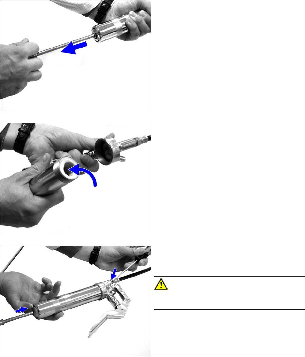 ► 拧松黄油枪后面的锁定装置。弹力将柱塞向前移。