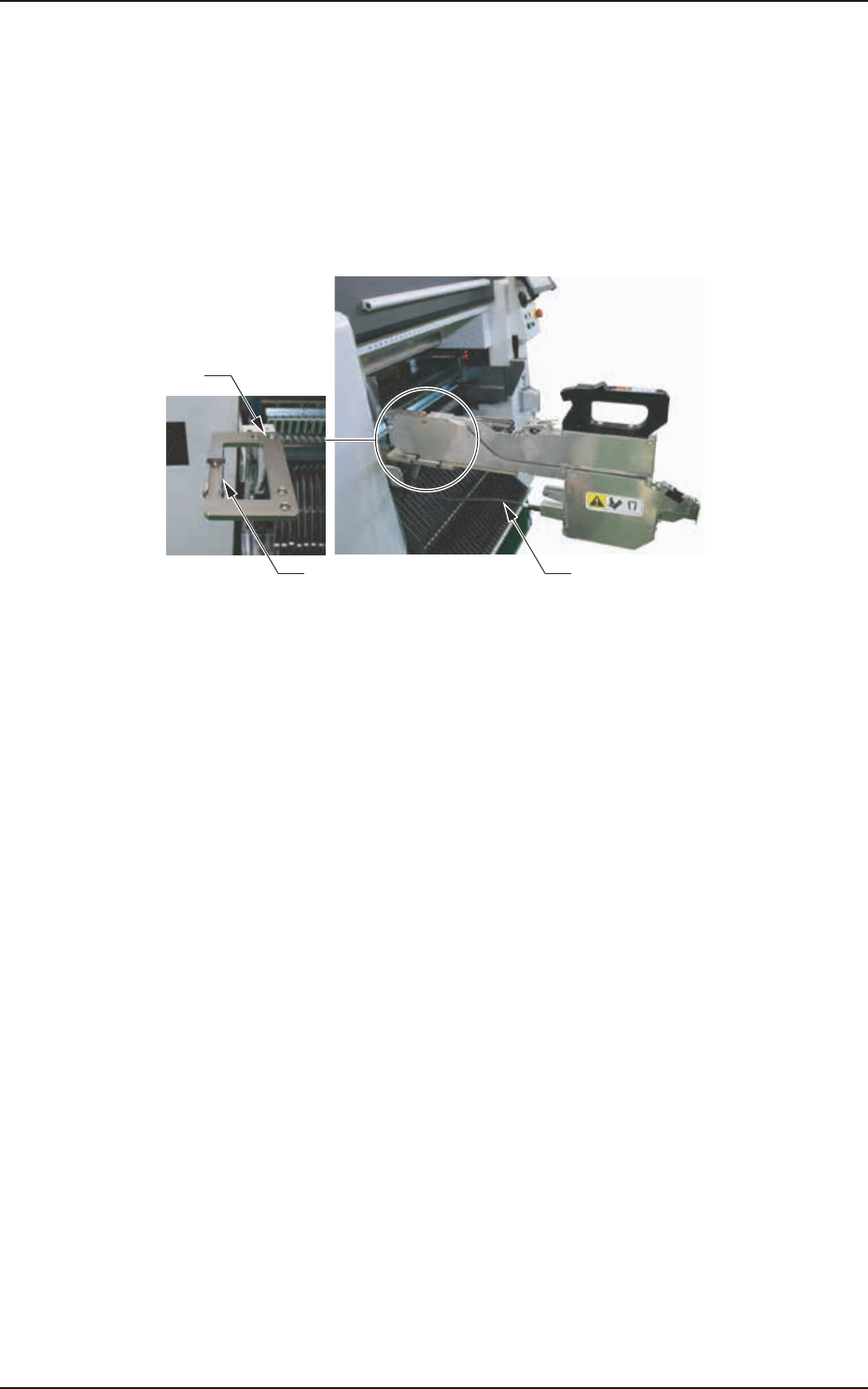 1OM-1842 3-17 1303-001 (6) Collegare il connettore del carrello al connettore sul lato macchina e rimettere a posto leva di ssaggio del connettore. Notice Quando il carrello banco caricatori deve essere inserito nella m…
