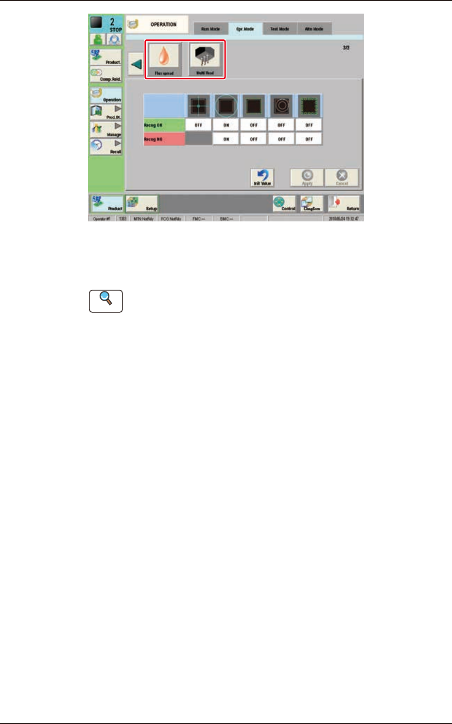 1OM-1842 3-32 2.4 Conferma del posizionamento 2.4.1 Impostazione della modalità di funzionamento Prima di avviare il funzionamento automatico, premere il tasto [Operation] sulla barra del menu secondario. È visualizzata …