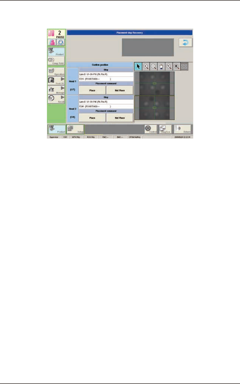 Premere il tasto [Placement Recovery] nella schermata "Run