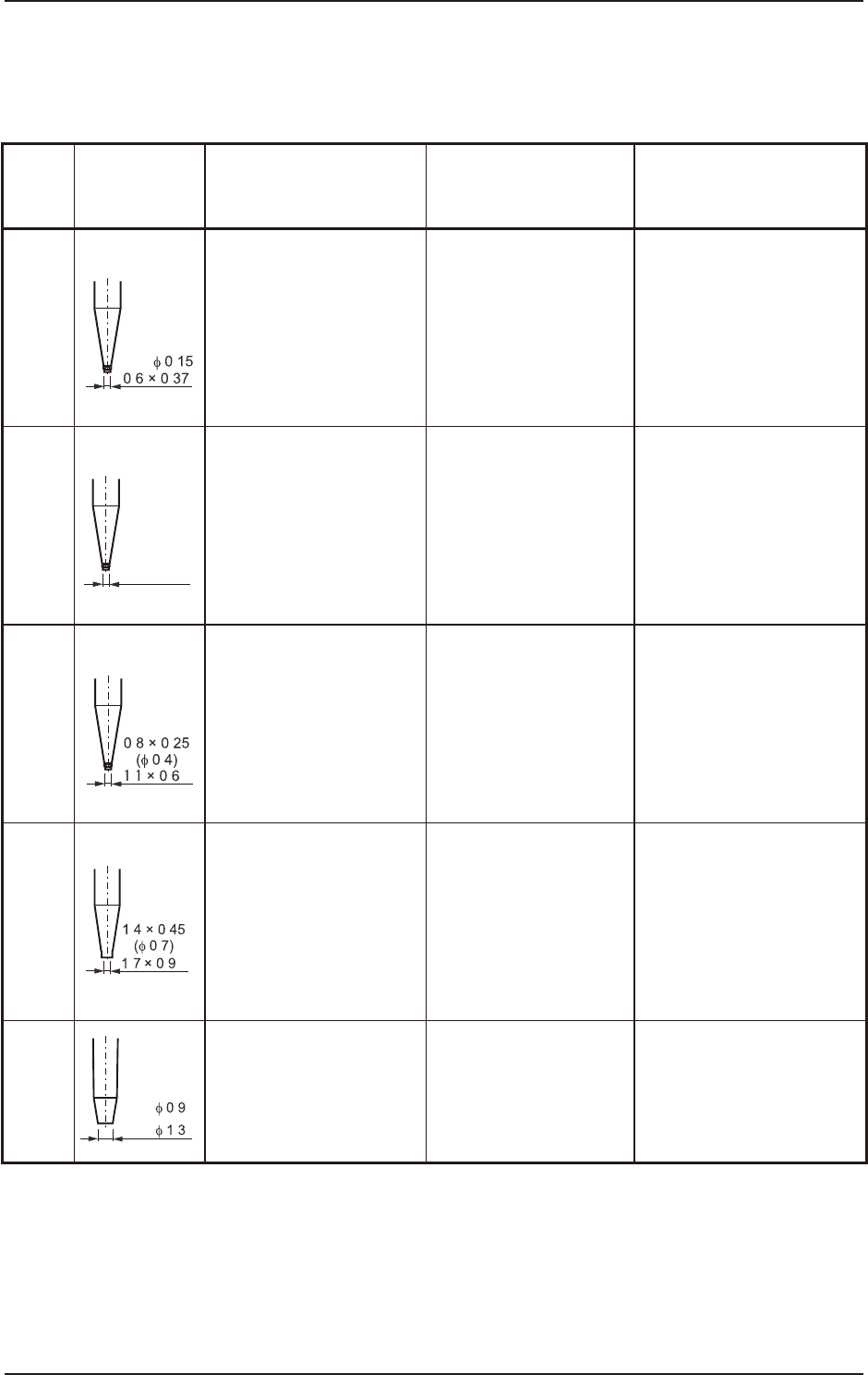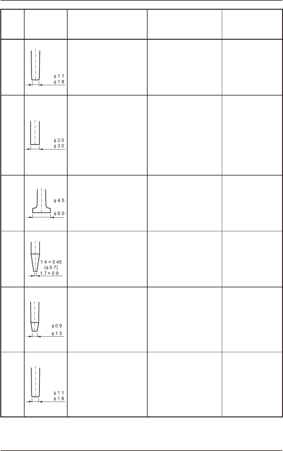 1OM-1842 4-24 Ugello tipo n. Forma Nota (a) Componenti di dimensioni (mm) Nota (b) Componenti applicabili per riferimento Osservazioni Numero parte Nome della parte HA14C O.D. I.D. , , 2,5 x 1,6 a 4,0 x 3,0 Spessore Da 0…