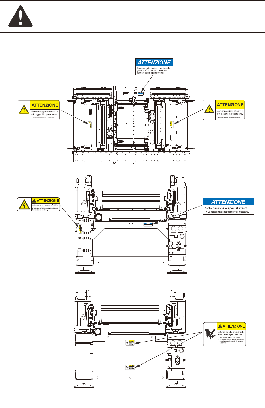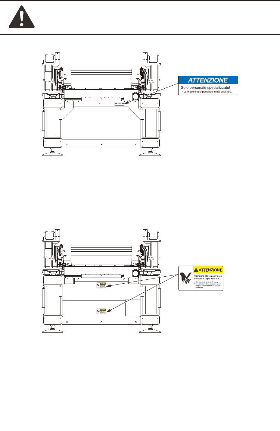 Precauzioni di sicurezza Sicurezza-20 1OM-1842 1305-002 5. Etichette di avviso Lato posteriore della macchina Lato posteriore della macchina (16) (4) 10-0252- The machine will be break down. Trained Personnel Only! F1X7