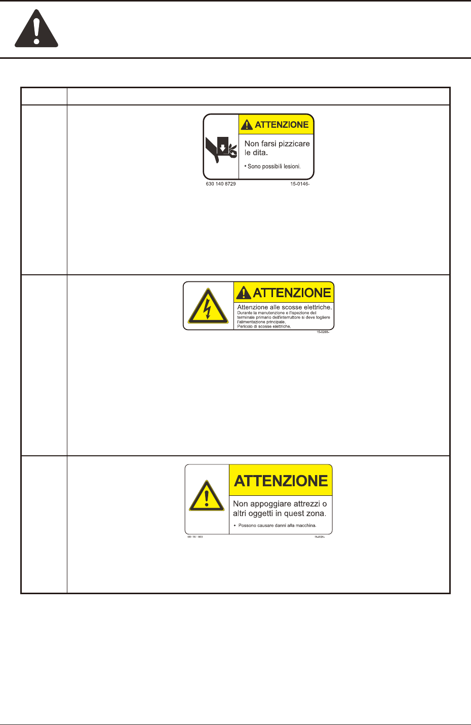 Precauzioni di sicurezza Sicurezza-27 1OM-1842 1305-002 5. Etichette di avviso Numero Etichette di avviso e loro descrizione (10) Descrizione Non mettere le mani all'interno della macchina mentre la macchina è in …