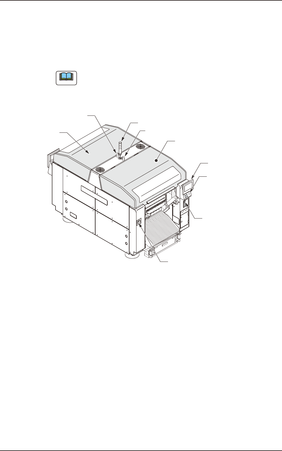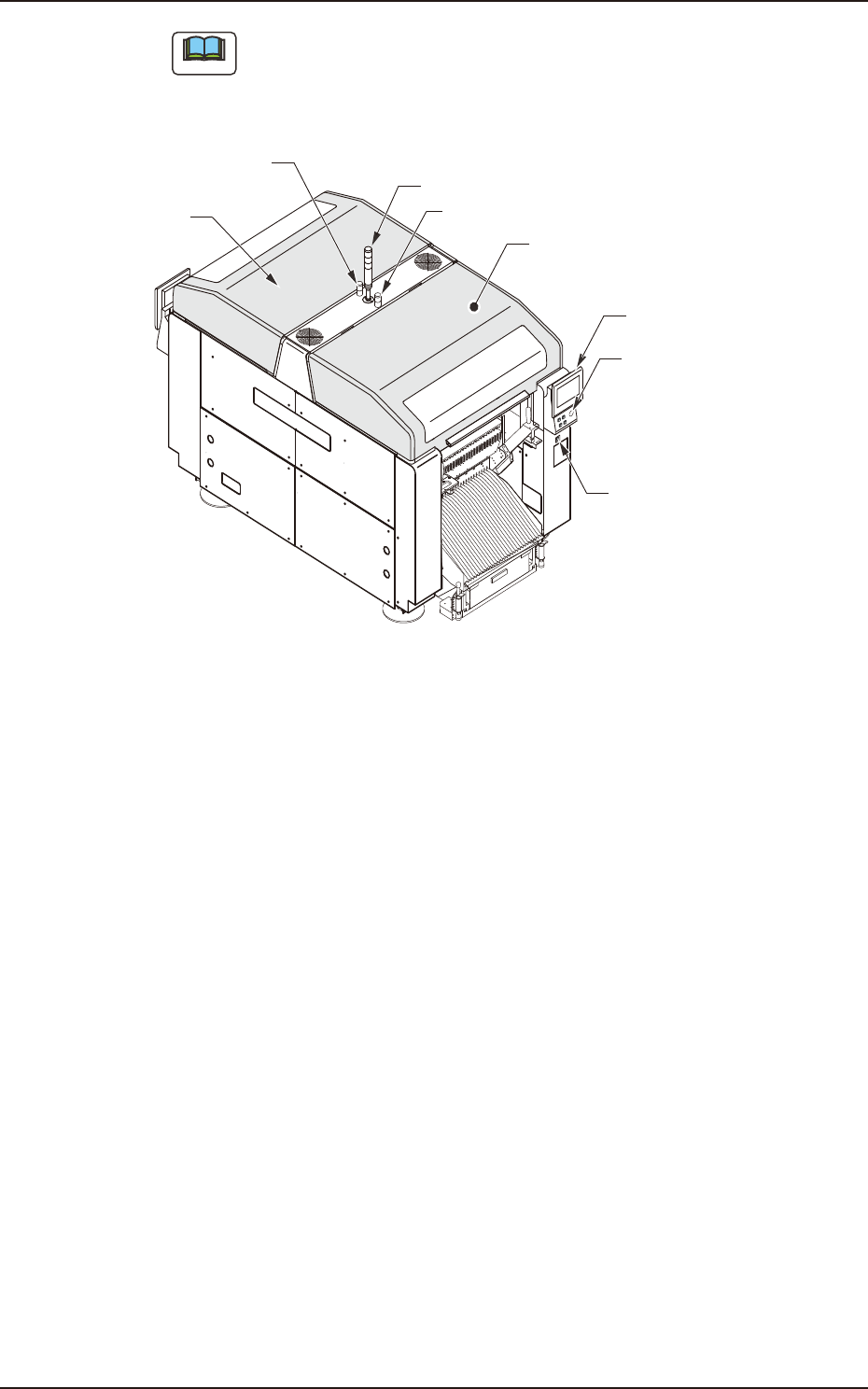1OM-1842 1-5 1303-001 2. Nome e Funzione di ciascuna sezione della macchina 2.1 Aspetto della macchina Note I numeri tra parentesi indicano il numero di riferimento dell’elemento. Lato anteriore della macchina Colonna lu…