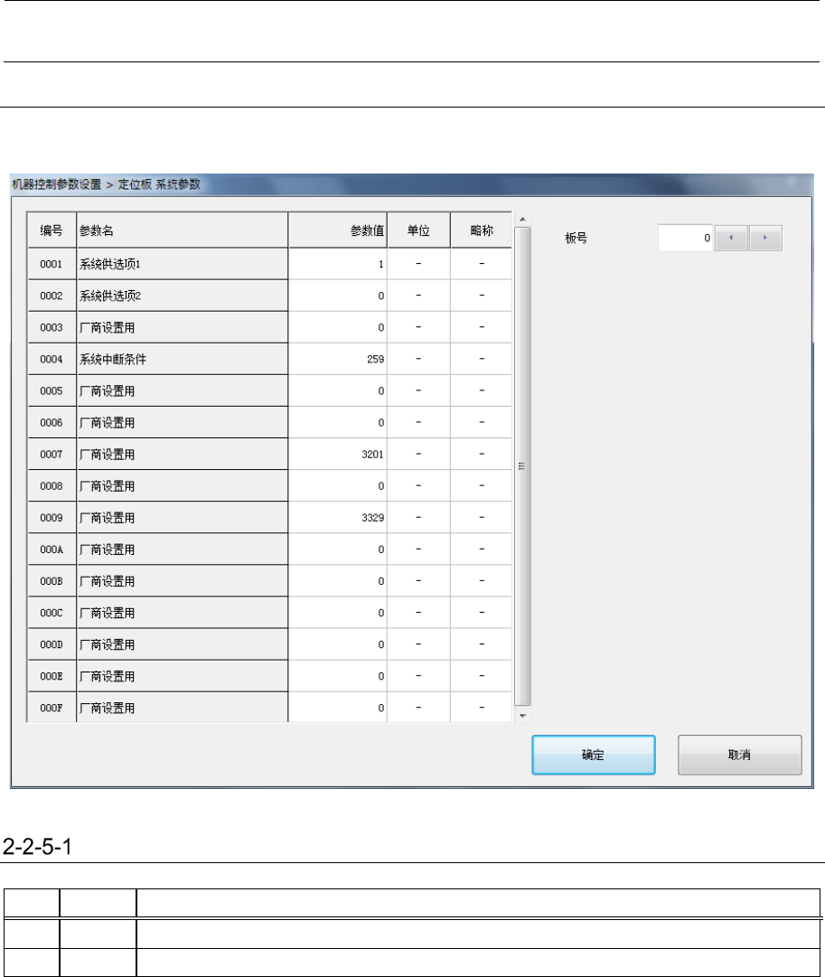 机器控制参数 2- 44 2-2-5 系统参数 如将“ channe l ”设置 为欲编辑的索引 ,即可对所设定的区分中 的 系统 参数进行编 辑。 面板编号 No. 类别 内容 1 0 面板编号 1 2 1 面板编号 2