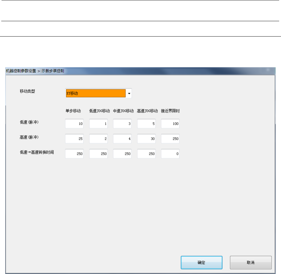 机器控制参数 2- 70 2-2-9 示教步骤控制 [ 低速(脉冲) ] 、 [ 高速(脉冲) ] 、 [ 低速→高速转换时间 ] 的“接近界限时”仅在选择 XY 移动时 使用。