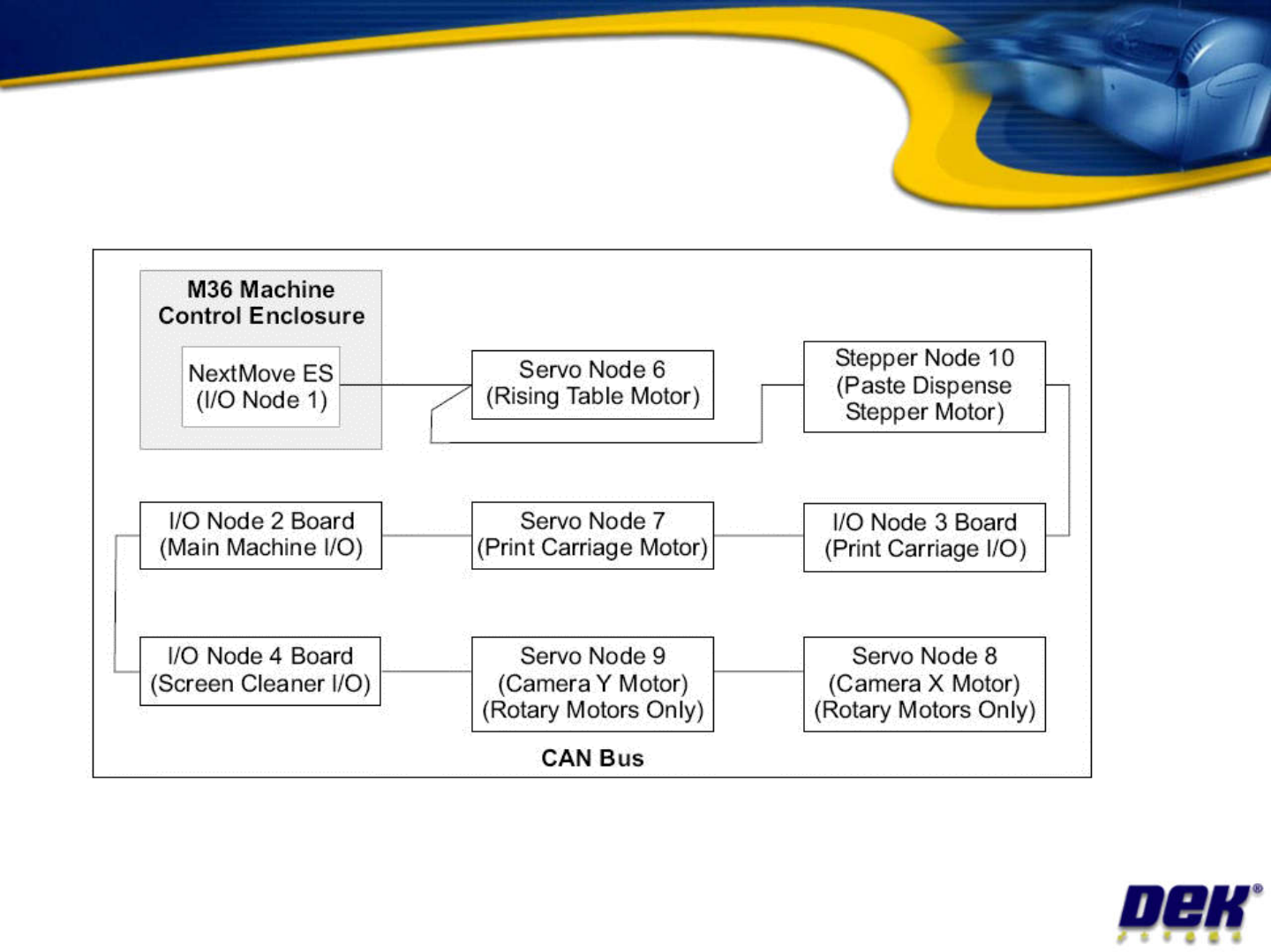 System communication Key board Mouse T ouch screen Flash disk The flash disk is bol ted to the printer frame (at the rear on latest machines). Now combined with the DK2 dongle. It stores machine type, serial number , num…