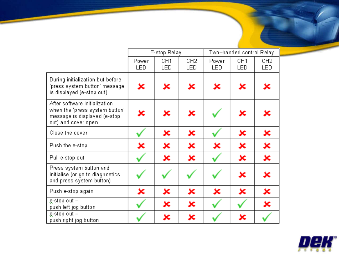 E-stop CCT LED indications