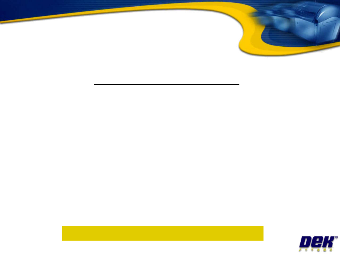 Benefit s to Custom er. That DE K is providing… One Day Rev iew Issue 2: July 2007 • a clear view of where Opportunities for Improvement are within your production environment. • a road map of how to get there. • access …