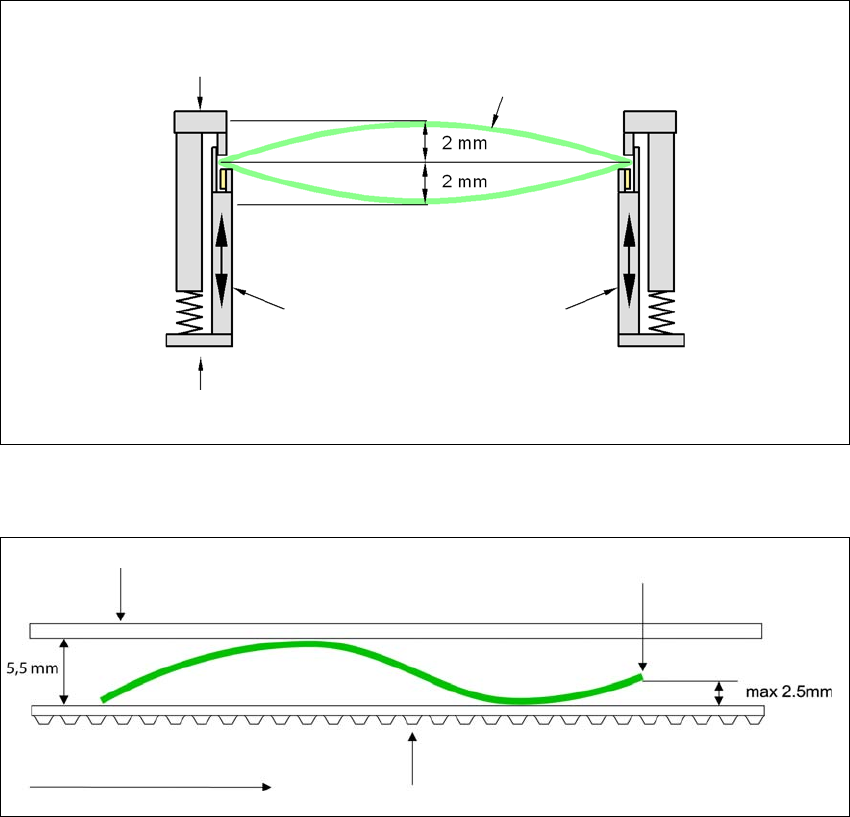 Hvelving på kretskort i transportretning + mønsterkortets tykkelse < 5,5 mm. Bøying av fremre