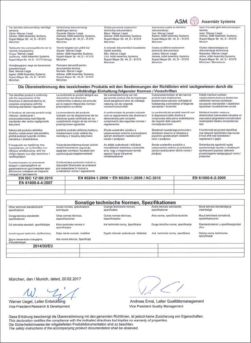 8 Vedlegg Instruksjonsbok SIPLACE SX1/SX2 utgave V2 og utgave V3 8.1 EF-samsvarserklæringer Fra programvareversjon SR.713.1 Utgave 12/2020 348