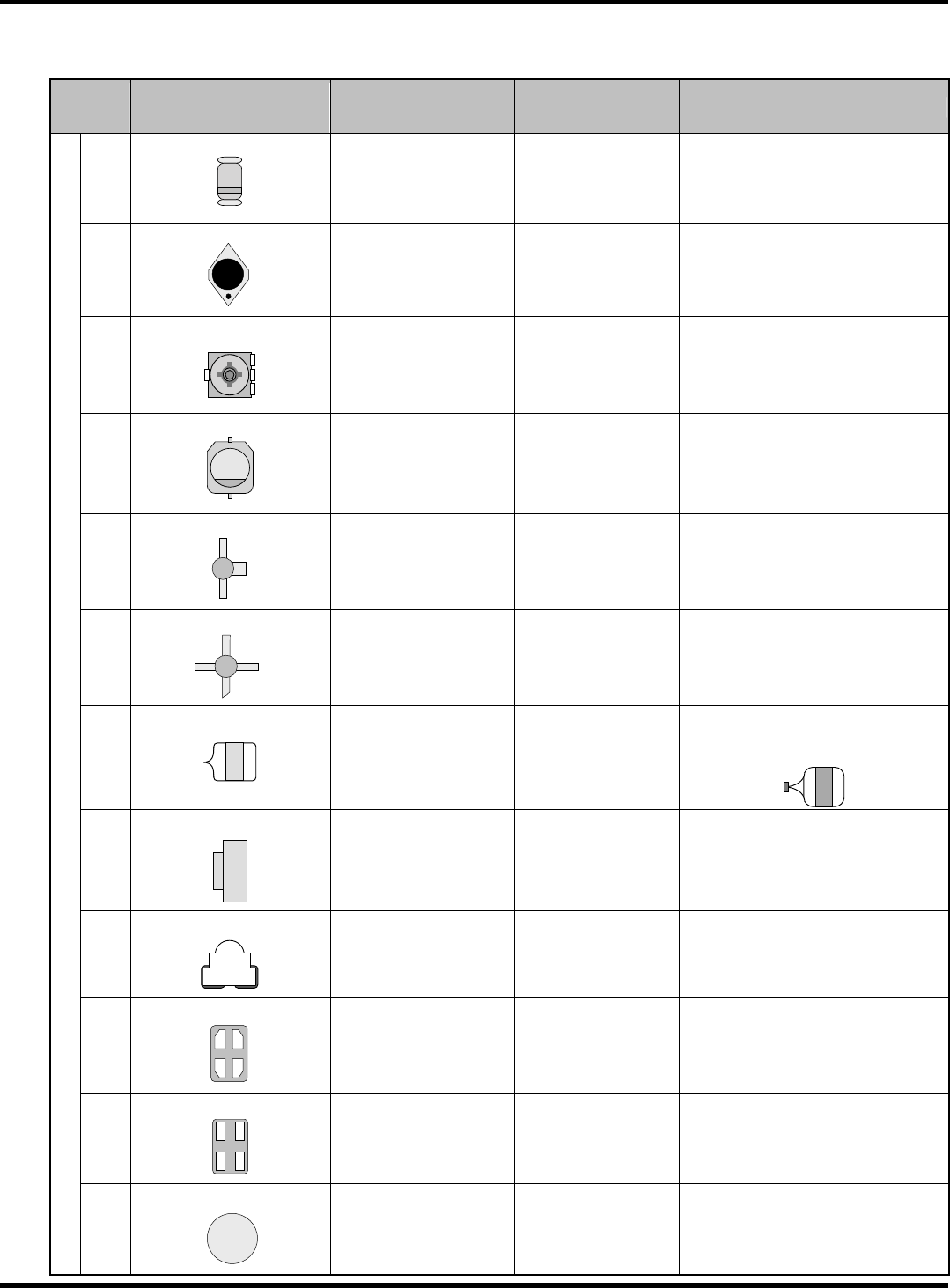 HGR14 附录 1.2 编制 轮廓识别数据 附录 1-10 轮廓识别形状一 览表- 6 < 特殊用途 型 > 形状编号 形状(外 观) 类别 参考编号 备注 特殊形 1 125 、 126 125: 自动设定 临界值、灯值 。 6a 基板识别 标记 实装点识 别标记 等 126: 自动设定 临界值 手动设定 灯值 6 HGR14-C- PM A01-A01- 00