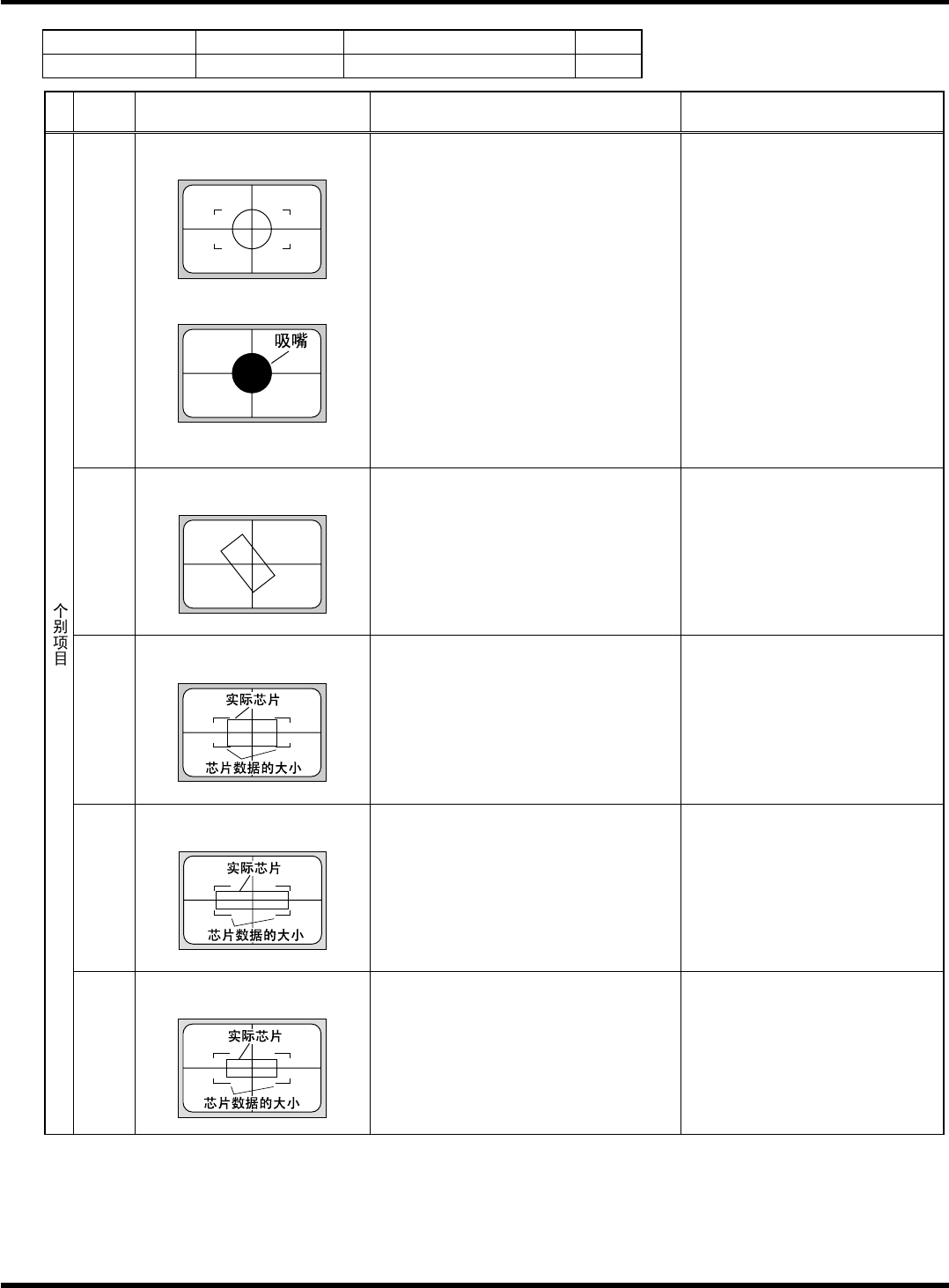 HGR14 附录 1.4 轮廓 识别错误信息 附录 1-70 参考 No. 形状编号 类别 51 ~ 56, 88 , 89, 15 7 1a, 1d 固定电阻、电容 器 等 2/2 代码 内容 原因 对策 1) L 或者 W 设定错误 请正确设定 L 或 W 。 ( 芯片数据 ) 2) 吸着错误·吸着 异常 请确认部品高度 、 吸着位置、 吸着 偏移量、 使用吸嘴, 使 吸着状态更 趋稳定。 41 (10-11) 直交度异常 <…