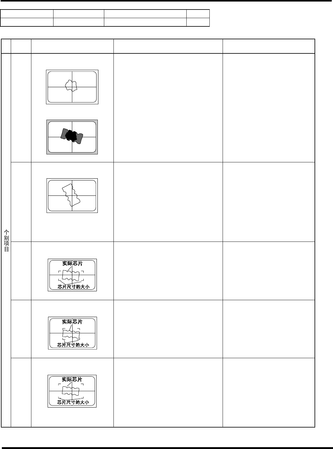 HGR14 附录 1.4 轮廓 识别错误信息 附录 1-90 参考 No. 形状编号 类别 131 ~ 135 1g 电阻网络 等 1/2 ∗ 以下图的式样为 ± 90 ° 。 代码 内容 原因 对策 1) 吸着错误、吸着 异常 (错误画面上只 看见吸嘴的轮廓) 请确认吸着状态 。 (确认芯片数据 及高度检测系统) 2) 参考编号错误 请确认芯片数据的参考 编号。 (芯片数据) 20 (20) 特征符号在规定 外 < 错误画面 &…