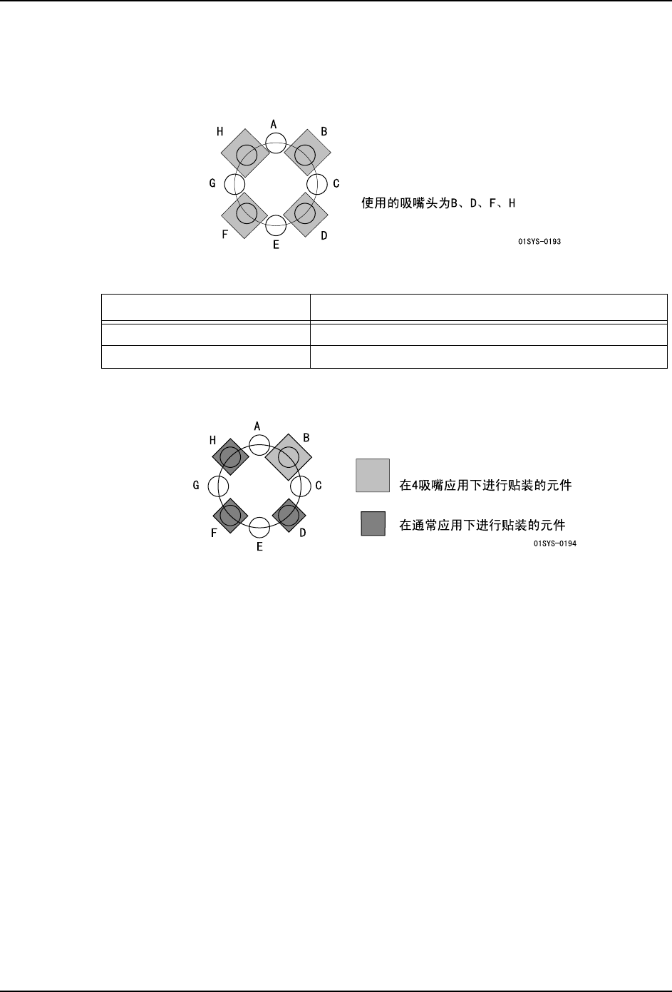 在 4 吸嘴运用中使用的吸嘴头固定为 B、D、F、H。如果将这些吸嘴头设定成吸嘴头跳过,就
