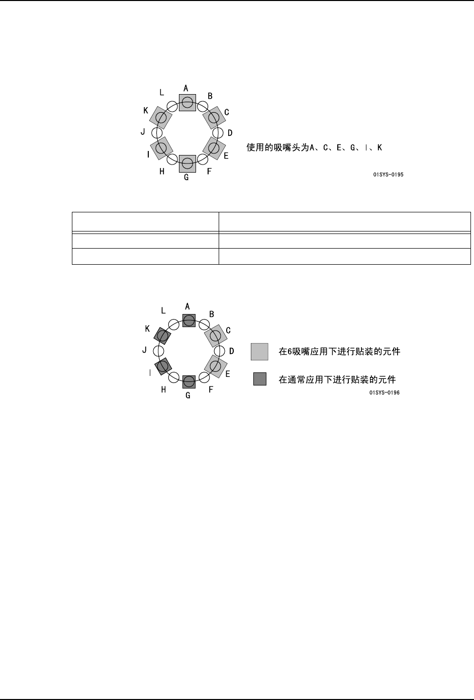 在 6 吸嘴运用中使用的吸嘴头固定为 A、C、E、G、I、K。如果将这些吸嘴头设定成吸嘴头