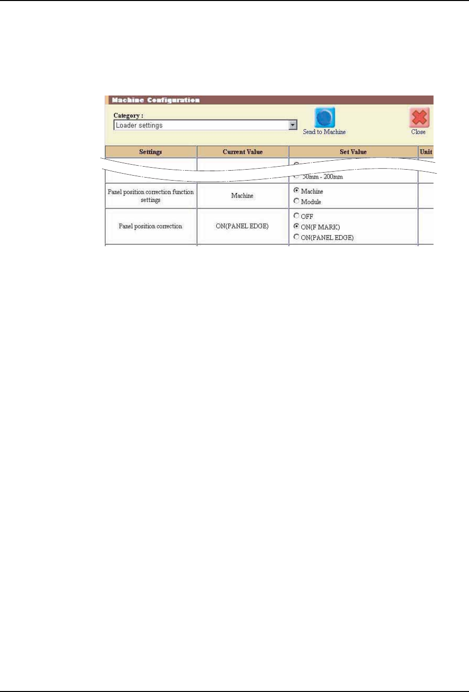 2. 在辅助软件的 [ 机器功能设定 ] 画面上,进行电路板停止位置补正功能的设定。